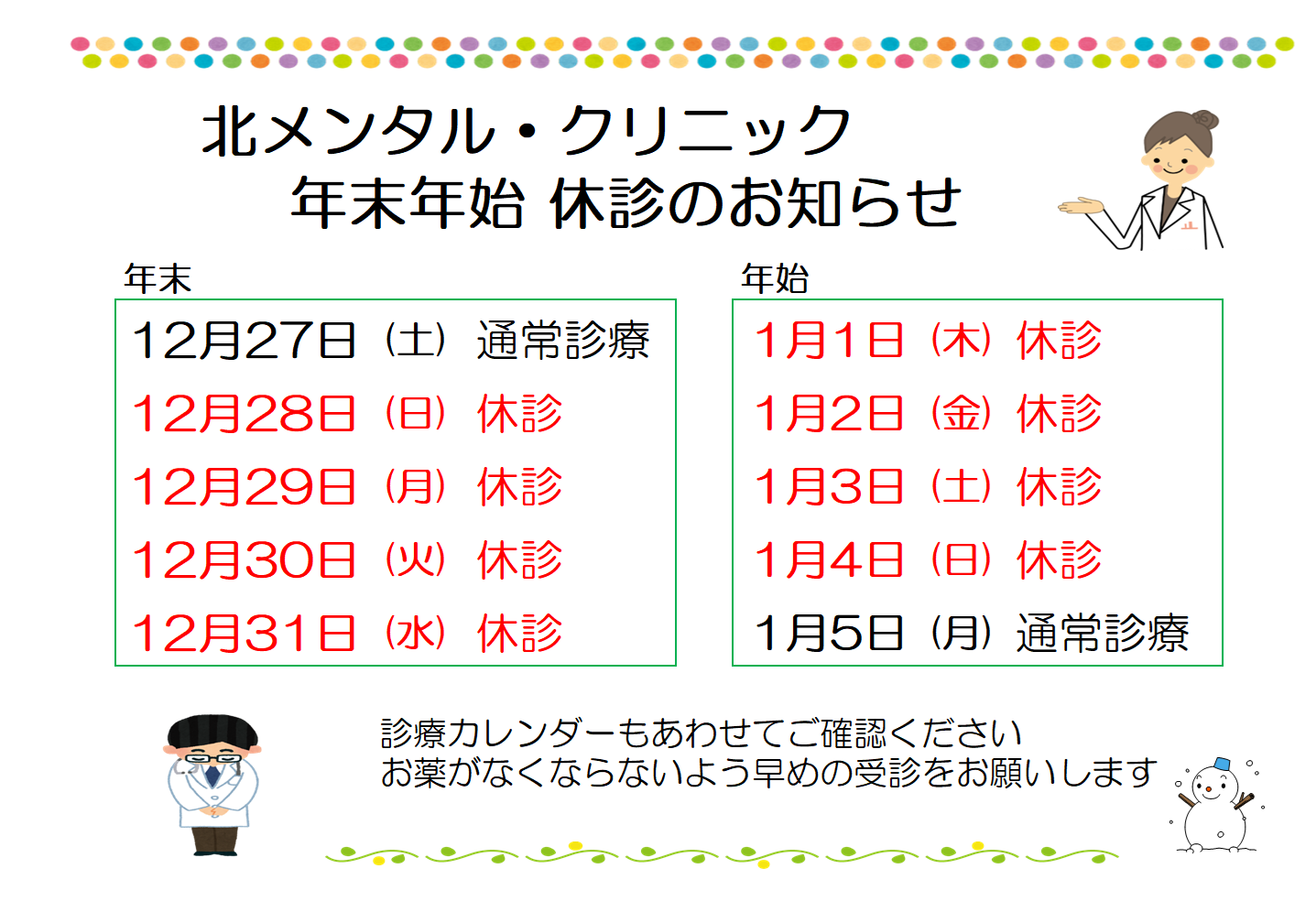 年末年始 休診のご案内