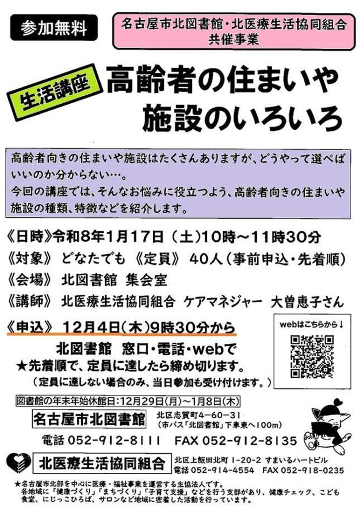 今回、北図書館で「高齢者の住まいについて」のお話をさせていただきました。