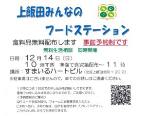 【12月14日/すまいるハートビル】上飯田みんなのフードステーション(事前予約制)