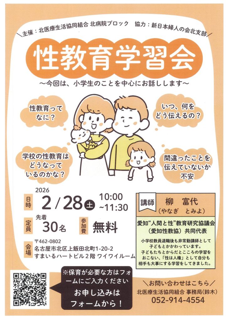 【2月28日 10時~/すまいるハートビル2F】性教育学習会~小学生のことを中心に…~