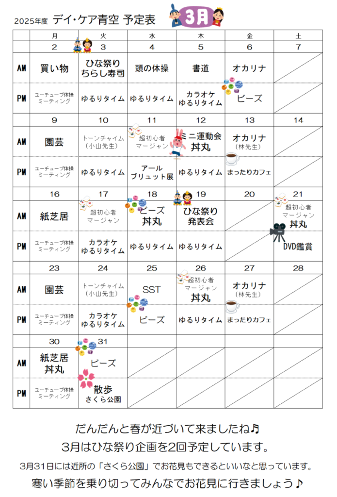 - 2026年02月27日3月 デイケア プログラム