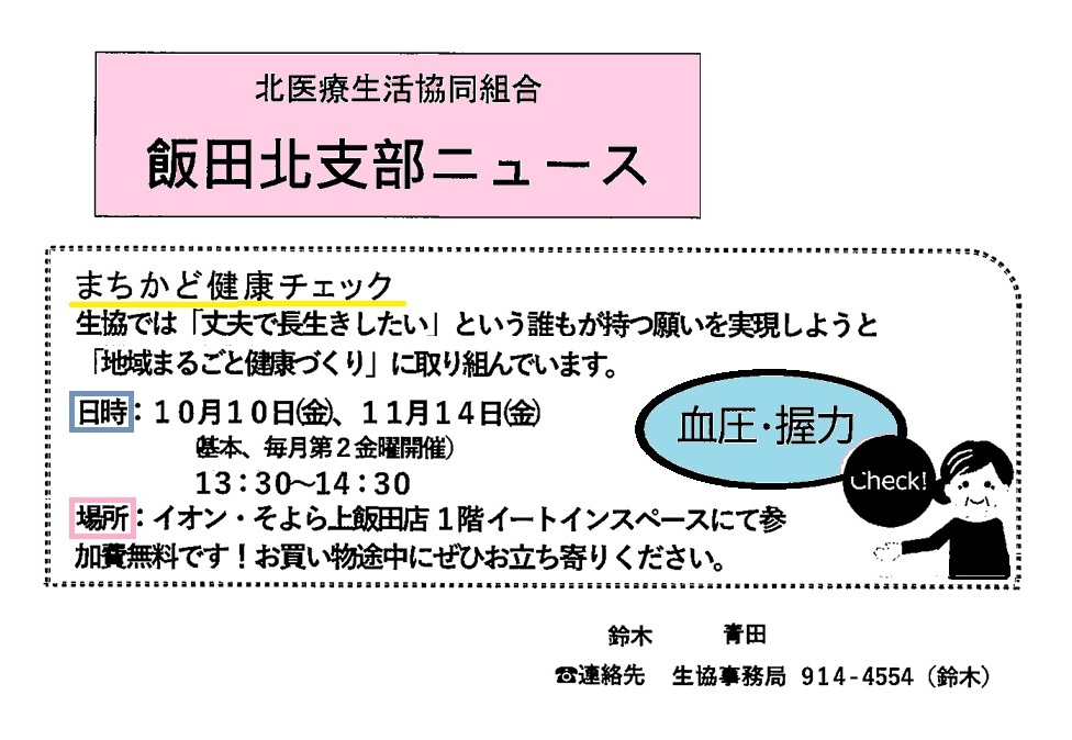 【上飯田/イオンそよら 1F イートインスペース】無料☆まちかど健康チェック🦴案内