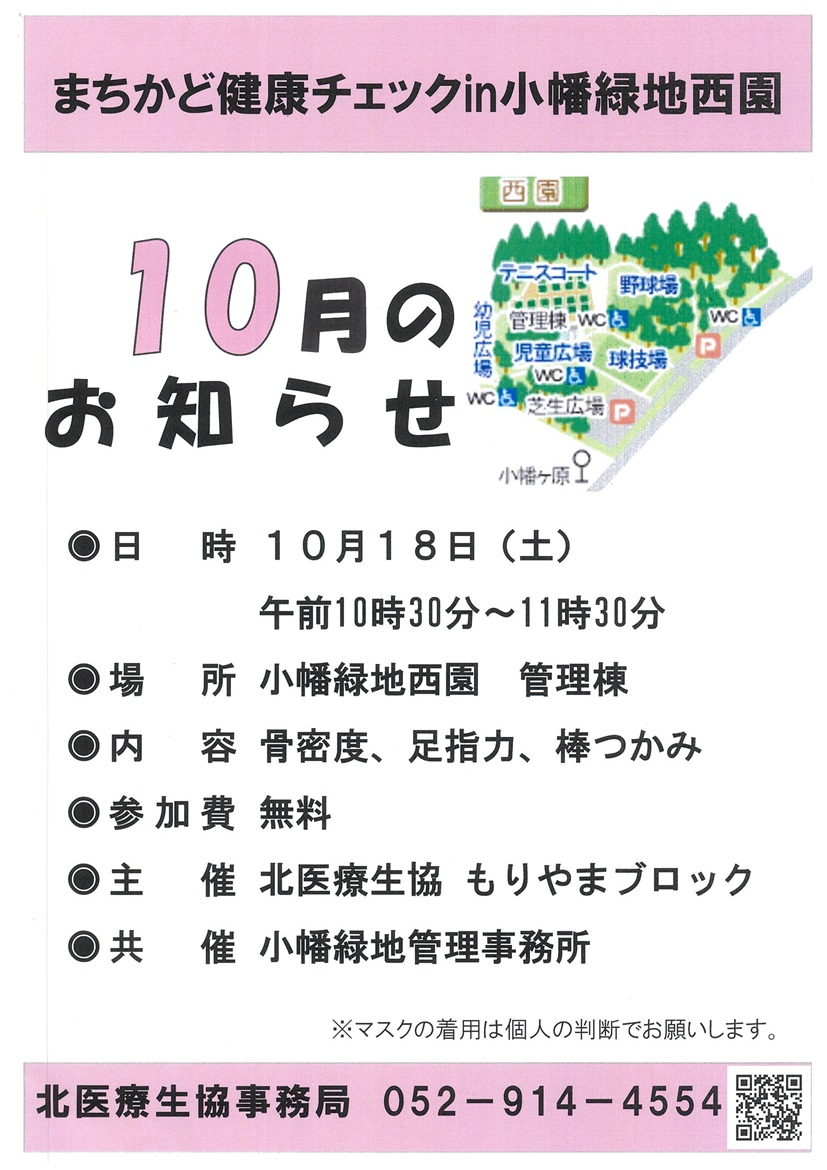 【小幡緑地西園 管理棟内】まちかど健康チェック~骨密度・足指力👣他~案内