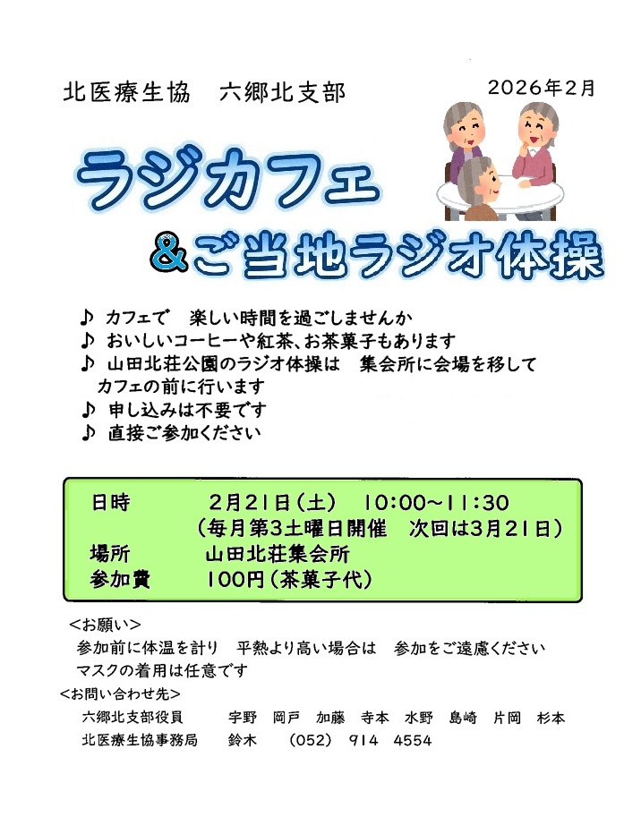【六郷北支部/山田北荘集会所 】ラジカフェ☕&ご当地ラジオ体操♬案内